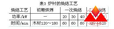 二次燒結在1200-1450℃進行,使α石英充分轉變?yōu)?alpha;磷石英。爐襯內壁燒結成整體熔化欣水時,當爐料化完后,保溫3~4h后出鐵,然后連續(xù)熔化2~3爐。表3為爐襯的燒結工藝。